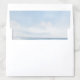 This wedding envelope liner features a serene beach scene with gentle waves and a vast ocean meeting the sky at the horizon, creating a tranquil and open atmosphere. The design uses soft blues and whites to evoke calmness, with hints of sandy beige adding warmth along the shoreline. Rendered in a digital painting style that mimics watercolor effects, it captures the essence of relaxation and escape. Perfect for adding a touch of natural beauty and serenity to your wedding stationery, this liner emphasizes simplicity and peace through its minimalist aesthetic.
