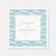 These wedding napkins feature a serene and elegant design with a textured background of wavy, light blue water patterns. The centered white frame highlights bold, uppercase names in a clean sans-serif font, complemented by an elegant cursive "and" connecting the two. The soft blues and whites create a calming aesthetic, perfect for formal occasions. This minimalist style emphasizes clarity and sophistication, making it ideal for weddings that celebrate tranquility and timeless beauty.