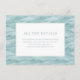 This wedding enclosure card features a serene aquatic theme with wavy, horizontal lines in soft blue-green shades that evoke the tranquility of water. The central white square provides a clean space for text, framed by a thin black border, and includes customizable placeholder text in a modern sans-serif font. The design combines a minimalist aesthetic with an elegant touch, perfect for conveying important details while maintaining a sophisticated and calming mood. Ideal for weddings, this card is designed to guide guests to additional information seamlessly.