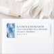This return address label features a minimalist yet elegant design with a frosty, wintery theme. The left side showcases stylized tree branches in varying shades of blue and white, creating a serene winter effect, while the right side provides clean white space for text. The color palette includes cool tones of light to medium blue accented by darker blues, enhancing the seasonal touch. The classic serif font adds a refined appearance, centered neatly on the label for balanced readability. Perfect for formal occasions, this design evokes a sense of calm sophistication, ideal for those looking to add a touch of winter elegance to their correspondence.