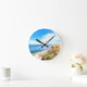 Bring the tranquil beauty of the coast into your home with this serene shoreline wall clock. Featuring a calming photo of a quiet beach with golden grasses and the endless blue sea, this clock is perfect for anyone who loves nature and the ocean. The peaceful scene and beautiful blues and tans will add a touch of coastal charm to any room. This shoreline wall clock makes a great gift for beach lovers or a wonderful addition to your own tranquil space.