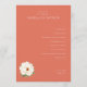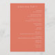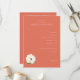 This elegant wedding program features a minimalist layout with a warm coral background, creating a serene and formal atmosphere. The design includes a single white peony illustration in the lower left corner, adding a touch of natural beauty. Text is arranged in a clean, centered format using a serif font, providing clarity and sophistication. Perfect for couples seeking a simple yet refined aesthetic, this program captures the essence of a timeless celebration.