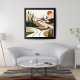 This minimalist abstract artwork features a winding river flowing through a serene desert landscape, accented by vibrant reeds and a warm sunset. The earthy tones and simple lines create a calming and timeless piece that will add a touch of nature to any space.