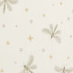 A delicate pattern featuring soft beige dragonflies, golden stars, and subtle pink dots scattered across a light cream background for a serene look.