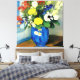 Serene Flower Vase Artwork. Enhance your space with this serene stylized watercolour still life vase of flowers. Delicate blues, yellows, and reds add a calming touch to any room.