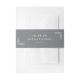 This wedding invitation belly band features a minimalist design with a solid gray background and white botanical illustrations on either side, creating a balanced and elegant look. The clean, sans-serif typography highlights the date, names, and location in a simple, modern style that conveys sophistication and serenity. The monochromatic color palette enhances its understated charm, making it perfect for couples seeking a refined yet uncluttered aesthetic for their special day.