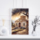 Serene Greek Church Landscape Religious Poster