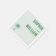 This wedding napkin design features a minimalist layout with a light green background, creating a serene and sophisticated atmosphere. The composition includes bold, uppercase serif typography for the names, paired with a delicate script-style "and," while a simple sans-serif font presents the date. A single palm tree illustration adds a tropical touch to the understated aesthetic. The overall style is modern and elegant, perfect for a formal yet relaxed celebration.