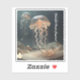 A graceful 3D jellyfish drifts across antique paper, blending historical charm with a mysterious underwater allure.