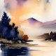 Bring the beauty of nature into your home with this stunning watercolour digital art print of a serene lake and mountain landscape at sunrise. This breath taking nature scene captures the essence of tranquillity and serenity, making it the perfect addition to any room in your home. Available in numerous sizes to match any room.