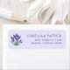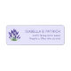 These return address labels feature a serene lavender illustration paired with elegant, centered text on a soft purple background. The design combines a classic serif font with a nature-inspired theme, creating a sophisticated and calming aesthetic perfect for personal correspondence. The minimalist color palette of purples and greens enhances the tranquil mood, making these labels ideal for those who appreciate understated elegance in their stationery.