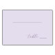 This table number features a minimalist design with an elegant cursive script on a soft lavender background, creating a serene and sophisticated atmosphere. The layout includes a simple horizontal line above the text, emphasizing clarity and modernity. Its calming color palette and clean lines make it perfect for weddings or formal events, offering a customizable option to add your own touch. The overall style is understated yet refined, ideal for enhancing any event setting with its subtle charm.
