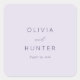 This wedding sticker features a minimalist and elegant design with a soft lavender background, creating a serene and sophisticated mood. The layout is balanced and symmetrical, showcasing clean sans-serif fonts for the names paired with a delicate script font for "and," enhancing its contemporary style. Customizable text allows you to personalize it for your special day, making it perfect for adding a touch of intimacy to your wedding decor. The understated color palette and modern typography ensure that this sticker will complement any wedding theme beautifully.