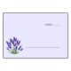 This wedding place card features a minimalist design with a soft, pale blue background that creates a calming atmosphere. A delicate lavender illustration in shades of purple and green is positioned in the bottom-left corner, adding a touch of botanical charm. The clean, sans-serif typography for "TABLE" complements the modern aesthetic, while ample negative space emphasizes simplicity and elegance. Perfect for weddings aiming to evoke tranquility and sophistication, this card combines contemporary style with natural elements.