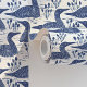 Serene Loon Pattern Blue and White Nature Design Wallpaper