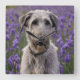 Pictured In A Field Of Purple Iris Is A Scraggly Irish Wolfhound.