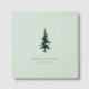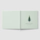 This wedding guest book cover features a minimalist design with a centered evergreen tree illustration in shades of green, set against a soft mint background. The layout is clean and modern, with ample negative space that highlights the tree's natural beauty. Customizable text fields for names and dates are presented in an elegant sans-serif font, adding a contemporary touch to the serene and sophisticated aesthetic. Perfect for capturing memories at a formal event, this design conveys tranquility and timelessness, making it ideal for weddings or significant celebrations.
