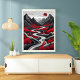 Immerse yourself in the tranquility of this captivating artwork. A winding river flows through a valley nestled between majestic mountains, their peaks reaching towards a fiery sunset. The vibrant autumn foliage adds a touch of warmth to the scene, creating a sense of peace and harmony.