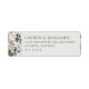 These return address labels feature a serene and sophisticated design with a balanced layout, combining muted earth tones of soft greens, browns, and creams. The left side showcases a delicate botanical pattern of pine cones, leaves, and berries, while the right side offers customizable text in an elegant serif font on a plain background. The overall style is rustic yet refined, perfect for formal occasions, capturing a natural, organic feel with a touch of modern minimalism.