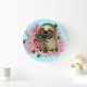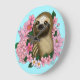 Serene Pink Lighthearted Sloth Floral Large Clock