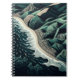 Serene Shores: This stunning top-down illustration captures the harmony of land and sea, featuring waves gently breaking on sandy beaches with lush green mountains in the background. Rendered in soothing shades of dark blue-green, the artwork evokes a sense of tranquility and balance. The intricate detail of the ocean’s patterns meeting the shore, paired with the trees lining the water’s edge, enhances the peaceful atmosphere. Created in a woodcut print style with simple lines and a flat design, the piece is reminiscent of hand-drawn animation, offering a timeless, serene depiction of nature’s beauty.