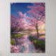 A picturesque scene unfolds as a peaceful stream winds its way through a serene landscape adorned with beautiful sakura trees. The branches of these majestic trees reach out, forming a delicate canopy over the stream, creating a whimsical corridor of pink blossoms. The soft murmur of the flowing water blends harmoniously with the gentle rustling of leaves, creating a soothing symphony of nature's melodies. The sight of the sakura trees in full bloom is a feast for the eyes, a celebration of nature's artistry and the ephemeral beauty of the cherry blossoms.