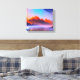 Immerse yourself in the breathtaking beauty of this stunning canvas print, "Serene Sunset Mountain Lake Landscape." This captivating artwork features a dramatic mountain range ablaze with the warm, fiery hues of a setting sun, casting a magnificent glow across the horizon. Below, a calm, reflective lake mirrors the vibrant sky and distant peaks in shades of tranquil purple, pink, and blue, creating an ethereal and peaceful scene. The subtle textured brushstrokes lend a painterly quality, making it feel like an original masterpiece. Perfect for adding a touch of awe-inspiring nature and vibrant color to your living room, bedroom, office, or any space that craves a sense of calm and wonder. This high-quality print is sure to become a focal point and conversation starter in your home or office.