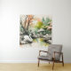 This exquisite tapestry captures the tranquil beauty of a serene swan floating gracefully on a peaceful lake. The artwork combines watercolor techniques with fine ink details, portraying a lush landscape of diverse foliage and forested areas in the background. Soft watercolor washes in shades of green, orange, and brown suggest a serene atmosphere, while the detailed ink lines add depth and texture to the trees and plants. The reflection of the swan on the water’s surface adds to the calmness of the scene, making this piece an ideal representation of nature's quiet majesty. Perfect for adding a touch of tranquility to any space, this illustration is both soothing and captivating.