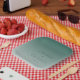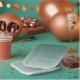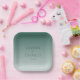 This wedding plate features a minimalist design with a gradient background transitioning from dark teal to light mint green, creating a serene and elegant atmosphere. The clean, sans-serif typography is centered in a balanced layout, emphasizing the names "Lauren and Charlie" along with a date, all set against a calming color palette of soft greens. Perfect for formal occasions, this design exudes sophistication and tranquility, making it an ideal choice for weddings or significant celebrations where understated elegance is key.
