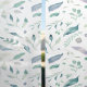 This is a seamless watercolor print on a white background. The design is arranged assorted shape leaves in shades of teal, sage, and dusty lavender, pastel.