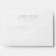 This wedding envelope features a minimalist design with centered text on a clean white background, creating an elegant and modern look. The soft teal color palette adds a calming touch, while the serif font enhances readability and sophistication. The layout emphasizes simplicity and balance, making it perfect for couples seeking a refined yet understated aesthetic for their special day.