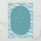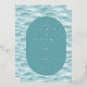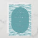 This elegant wedding invitation features a serene aquatic theme with a textured, wavy water pattern in shades of light blue and white. The central oval frame is filled with a solid teal color, providing a striking contrast against the watery background. Inside the oval, classic serif typography presents the event details in a formal and sophisticated manner, emphasizing the names and date while maintaining readability. The design conveys a calm and harmonious mood, perfect for celebrating a special union with unity and tranquility.