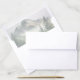 This wedding envelope liner features a serene landscape scene with soft, muted tones of light gray and pale yellow for snow-capped mountains, complemented by evergreen trees in various shades of green. The watercolor art technique creates a dreamy, ethereal quality, emphasizing tranquility and natural beauty. The composition is balanced, with the mountain range at the top and trees providing vertical interest, making it perfect for adding an elegant touch to your special day. The absence of text allows the peaceful imagery to stand alone, inviting you to immerse yourself in nature's quiet majesty.