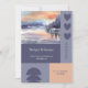 This sophisticated destination wedding invitation features a stunning hand-painted watercolor landscape of a tranquil lake at sunset, blending soft shades of dusty blue, lavender, and warm peach. The artistic content captures a romantic, peaceful atmosphere, perfect for couples planning a lakeside ceremony or an elegant outdoor summer wedding. Designed with a unique modern grid layout, this invite balances fine art with contemporary graphic elements, including minimalist heart icons and a bold vertical "WEDDING" typography. The color palette is a harmonious mix of cool-toned purples and warm terracotta accents, creating a trendy yet timeless aesthetic. Key traits of this stationery include its clean lines, artistic flair, and customizable text fields that allow you to easily personalize the couple's names, date, and venue details. This invitation is the ideal choice for those seeking a mix of minimalist style and sentimental, nature-inspired art.