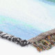 A quality printed throw has its advantages. This is a much finer weave throw than its loopier cousins, and though lighter, it is worth the investment for custom room accessorizing. The back is much prettier than the typical brown, and the fringe on the long sides very vivid, the selvage nicely done. Before photographing, I washed the throw in cold water, delicate, with a thicker woven throw the same size. On tumble dry low, this throw was dry in half the time as the other. This is a very practical quality if you use throws for furniture covers or to wrap up in frequently. The sleekness of the fabric makes it a great layer for accenting or protecting without the feeling of sitting on too much stuff. Perfect for napping or when you feel a light chill coming on. The color printing is beautiful and on this fabric, matched the design and color of my Photoshop image. This is an advantage for blending room fabrics and colors. The fringe on the short sides prints the colors from the design image and therefore varies from the side fringe. I streaked a white fractal line through the plaid pattern to give the illusion of weaving. This printed as crisp as an illusory thread, and put some white in the short side fringe, showing another advantage of print vs loomed- for artistic purposes, line lines, detail, and color integrity can be planned and preserved. My loomed throws have color limitations and more of a needlepoint texture. Print throws reproduce an exact image. The throw felt a little stiff straight out of the package, but this went away in the first delicate wash. Of course I searched the wash water for ink or bleeding and there was none.