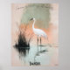 A minimalist depiction of a white crane standing among soft reeds in a tranquil pond, perfect for creating a peaceful atmosphere in meditation or mindfulness spaces