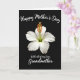 This card shows a single white flower centered on a deep black background, as if it’s gently floating in the dark. Soft lighting traces each petal’s edges and fine texture, giving the bloom a calm, treasured presence like a quiet gesture of affection ❤️. In the middle, a small green core holds a cluster of orange stamens that add a warm spark against the black-and-white contrast. Near the top, “Happy Mother’s Day” appears in white, flowing lettering that stands out clearly against the dark space. Near the bottom, “With all of my Love, Grandmother” is written in matching white lettering, spaced neatly beneath the flower like a tender sign-off. The overall layout feels intimate and uncluttered, letting the flower and words share the spotlight without distraction 🌼. The orange stamens sit crisply at the center, framed by bright petals that fade softly into the surrounding black.