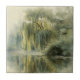 Ceramic Tile - Calming watercolor willow tree with soft green foliage and peaceful lake reflection. Ideal for nature lovers, mindfulness seekers, and those who love tranquil, relaxing scenery.