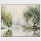 Wrapping Paper - Calming watercolor willow tree with soft green foliage and peaceful lake reflection. Ideal for nature lovers, mindfulness seekers, and those who love tranquil, relaxing scenery.