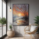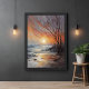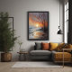 This stunning AI-generated artwork glossy poster print captures the calm and ethereal beauty of a winter sunset. The delicate blend of soft oranges and muted purples creates a mesmerizing sky as the sun gently fades over a frosty, quiet landscape. With its bare trees silhouetted against the horizon and reflections dancing on the frozen ground, this piece evokes a peaceful, reflective atmosphere that is perfect for any room in your home. Its minimalist yet detailed nature makes it an ideal addition to modern, contemporary, or nature-themed decor. This artwork offers a unique and modern take on traditional nature landscapes. The subtle textures and cool tones make this piece stand out, providing an elegant and serene vibe to any space. Ideal for buyers who appreciate peaceful and calming decor, this wall art is perfect for relaxation spaces, bedrooms, or meditation rooms. It also makes an excellent gift for housewarmings, birthdays, or anyone who loves nature-inspired art.