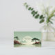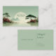 Define your brand with tranquil serenity and striking natural elegance using this captivating business card. The design centers on a breathtaking Asian-inspired waterscape under a pale, hazy sage green sky. A massive, luminous white or pale gold sphere (representing the sun or moon) dominates the center, beautifully framed by distant, misty mountains. The foreground features a still, reflective lake or body of water, with twin shores anchored by gnarled bonsai-style pine trees and vibrant floral clusters. These clusters showcase abundant deep red and soft pink roses, creating a powerful contrast against the cool, quiet landscape. This artwork captures the balanced solitude of a hidden Zen garden, resulting in a unique and sophisticated brand statement that conveys peace and vitality. This business card is ideally suited for a spiritual advisor or wellness coach emphasizing balance and natural energy, a boutique travel agency promoting scenic Asian retreats, or a fine art print seller specializing in serene, atmospheric works. It would also perfectly suit a landscape architect whose focus is on artistic, tranquil garden designs, or a tea room proprietor looking to convey a refined, peaceful experience.