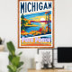 Serenity Awaits: Discover Michigan’s Tranquil Lakes and Vibrant Autumn Scenery | Escape into the captivating beauty of Michigan's lakeside landscapes with this striking vintage-style poster. Featuring a serene sunset over calm waters, framed by the rich reds, oranges, and golds of autumn foliage, this artwork captures the essence of Michigan's peaceful, natural splendor. Ideal for anyone looking to bring a sense of tranquility and adventure into their space, this poster is a tribute to the Pure Michigan experience—a reminder of cherished sunsets, scenic drives, and the untouched beauty of the Midwest.