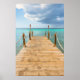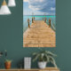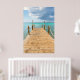 Our high-quality poster features a picturesque view of a long wooden pier stretching out into the vast expanse of the ocean. The soft hues of the sky blending with the gentle blues of the water create a soothing ambiance that will instantly transport you to the beach.