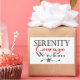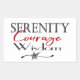 Red and black typography graphic features the three basic tenets of the Serenity Prayer.