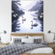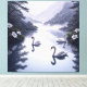 This soft-toned landscape depicts a tranquil lake surrounded by misty mountains and forests, with swans gliding gracefully. The calm water reflections and delicate flowers create a scene of peace and natural beauty, a serene retreat in untouched nature.