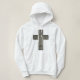 This women's hoodie has a design that displays parts of the serenity prayer quote placed at each corner of a cross with a black outline in this faith based bible quote theme. This hoodie is made from a 10 oz cotton-poly blend 100% cotton face set-in sleeves and double-needle stitched armholes & bottom band for extra durability has a matching image on the back.