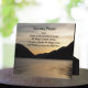 Decorative 10 x 8 inch plaque with hinge featuring the landscape photo image of a sunset over a peaceful lake and mountain silhouettes along with the inspirational words of the Serenity Prayer. Makes a thoughtful gift for family members or friends!