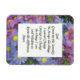 The inspirational serenity prayer surrounded by purple flowers conviently on a fridge magnet to remind us to be serene.