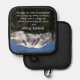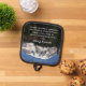 Safely handle baking trays, cookie sheets and muffin tins from the oven with this pot holder with black trim that features a scenic photo image of snow capped Mount Rainier along with the words of the inspirational Serenity Prayer printed in white lettering. Select your pot holder backing style. Makes a great gift for the kitchen!