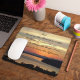Standard mouse pad for your computer work station that features the photo image of a glowing, orange seascape sunset along with the inspirational words of the Serenity Prayer.